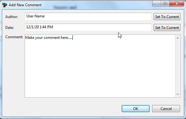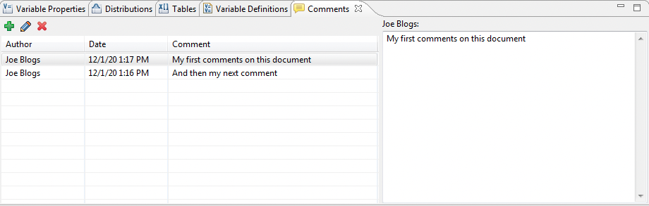 To add a comment, click the green '+'. The Add/Edit Comment dialog will open and you can enter your comments as shown below.