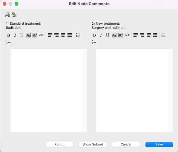 The dialog allows you to enter notes for each branch of the selected node. The notes can be formatted using the formatting toolbars.