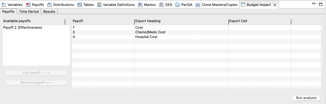 All 3 payoffs will be exported, but we will only use the Total cost in the Example Budget Impact worksheet (next section).