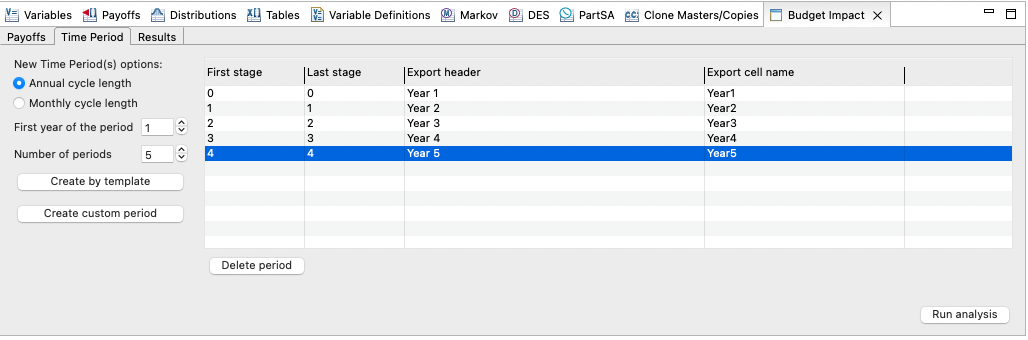 The results from separate runs for each time period will be presented in the Results tab.