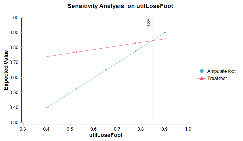 Note that the Treat Foot strategy's EV rises with the value of utilLoseFoot even though utilLoseFoot is not referenced by that strategy. This change is a result of the change in the correlated variable utilLoseLeg.