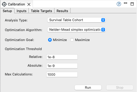 Inputs: Choose the model inputs that the calibration process can adjust.