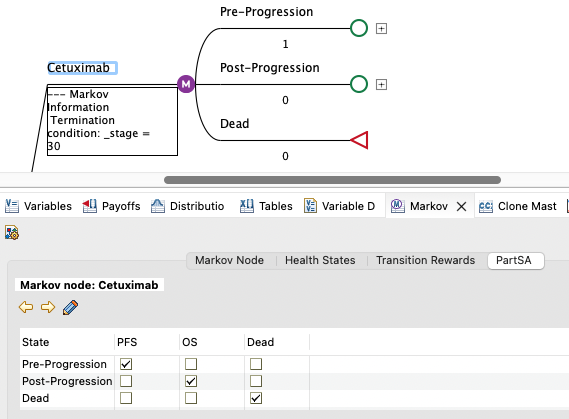 As a reminder, the Markov models themselves are already setup to include one or more states with each survival curve as shown below, via the Markov View.