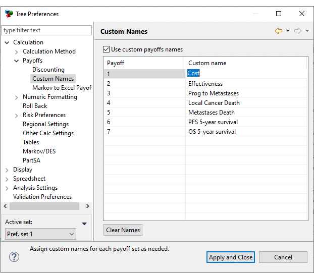 Custom payoff names are used to identify what each payoff set represents.